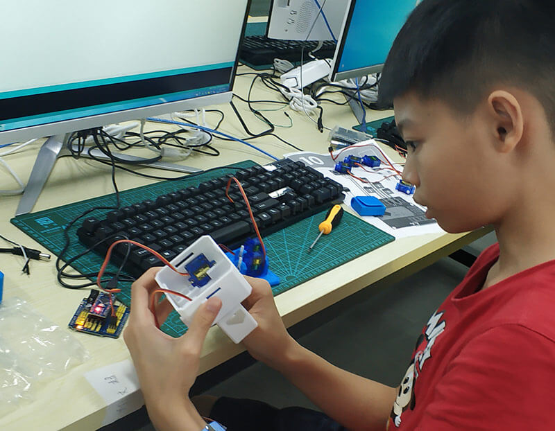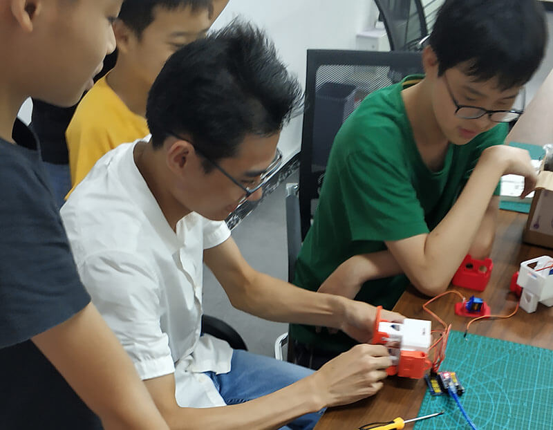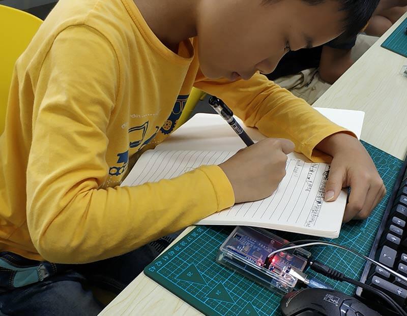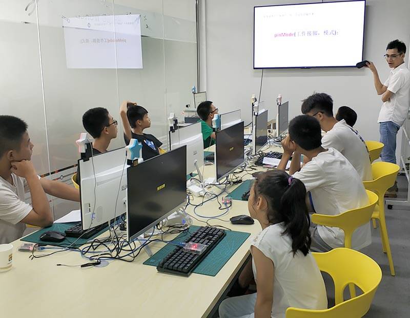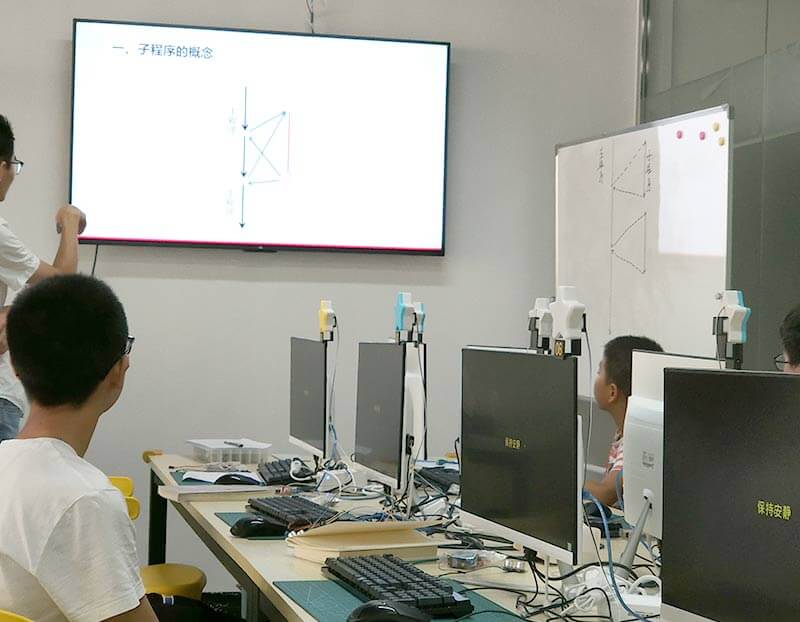 除了软硬件结合,本课程更加强调孩子对代码化编程的掌握,通过学习代码编写来完成各种作品。对英语词汇量的积累很有帮助。能够掌握程序的顺序结构,执行逻辑,机械原理,各类传感器编程,物理电子等等知识。